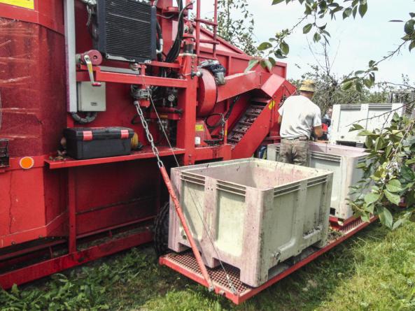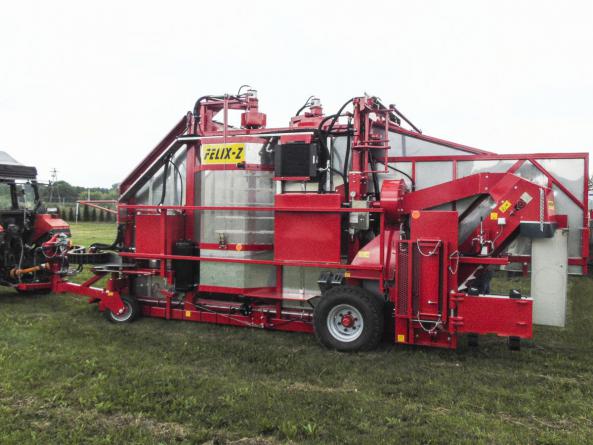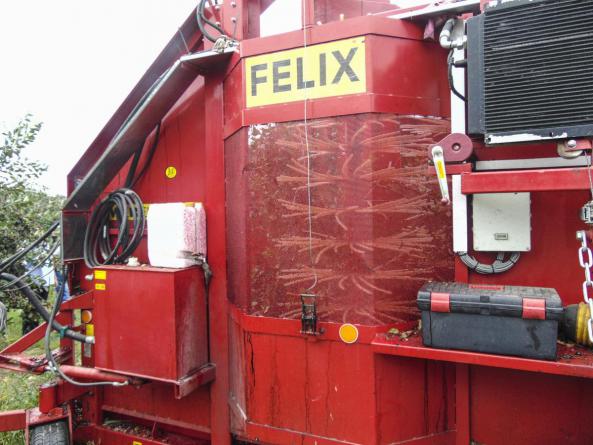 Hatékonyságára sem lehet panasz: egy traktoros és 2-3 ládapakoló segítségével képes folyamatos haladásban, megállás nélkül dolgozni, így a napi terület teljesítménye elérheti akár a 4-4,5 hektárt.
