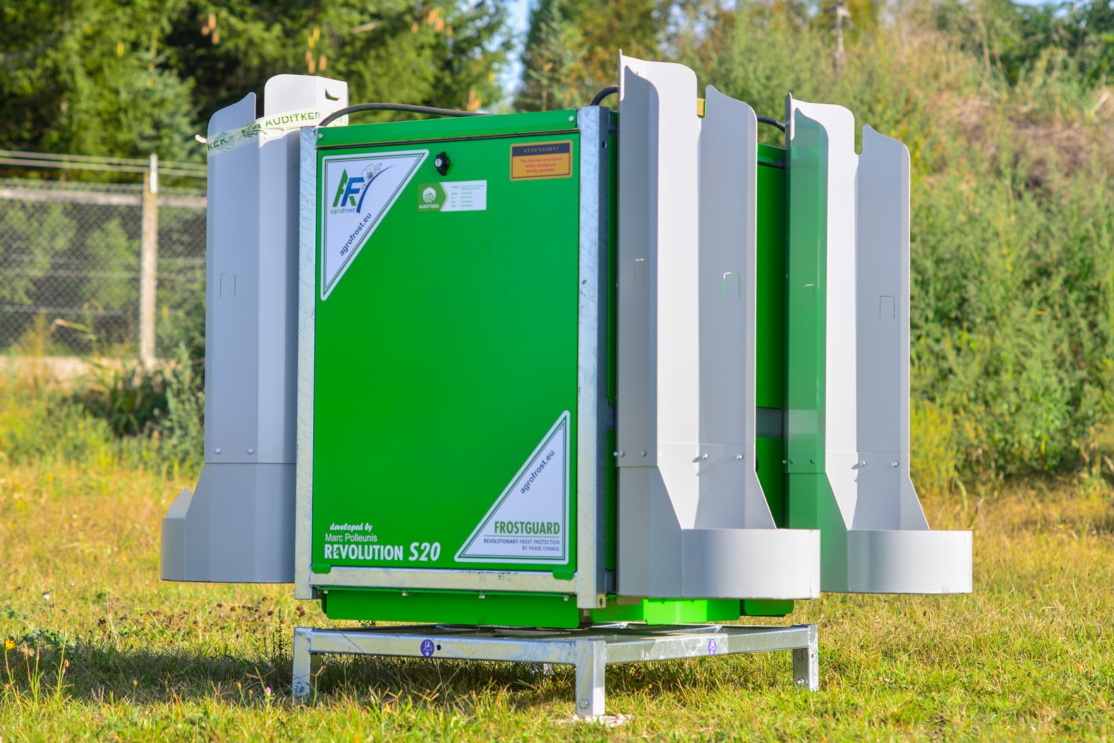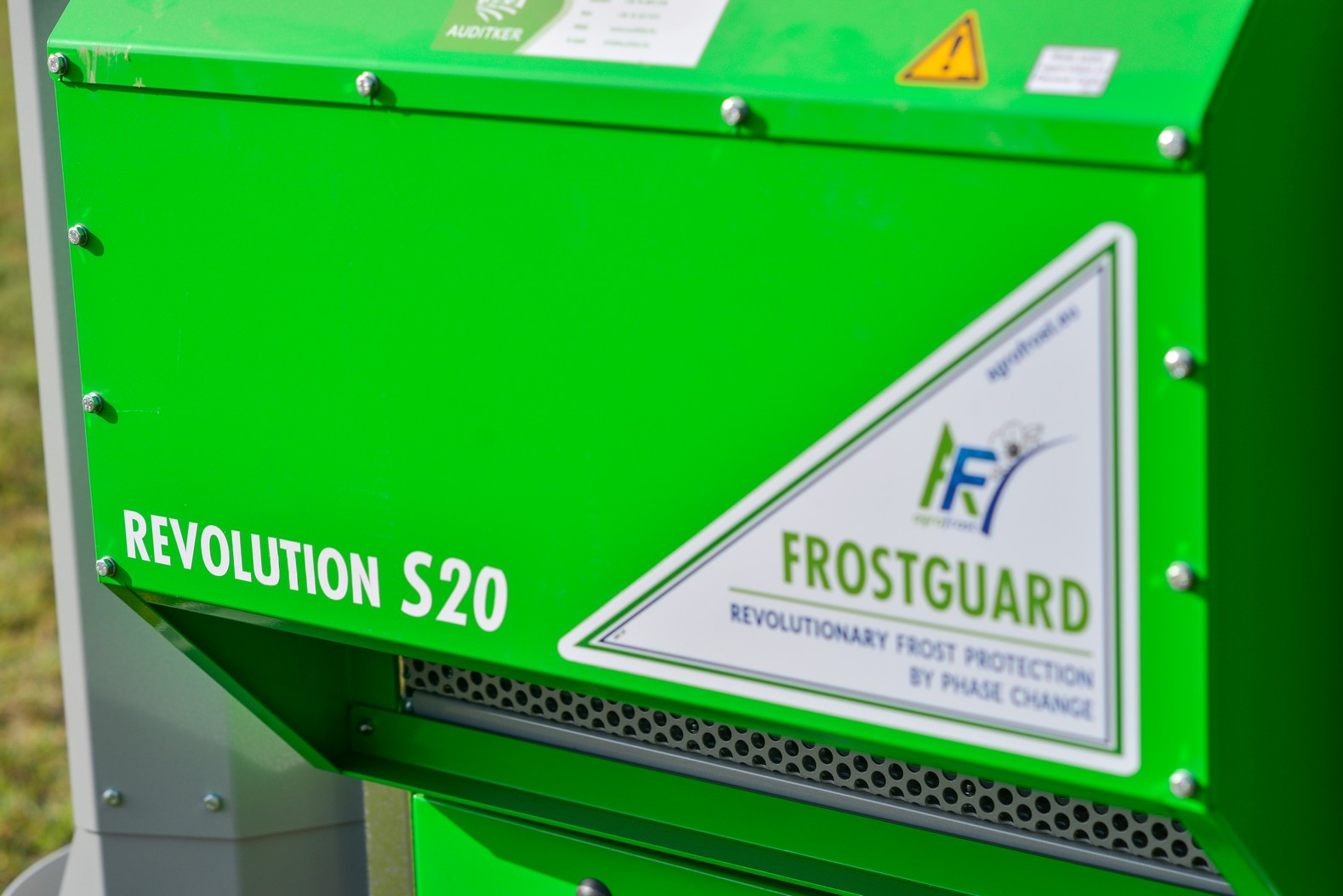 A FrostGuard telepített gázüzemű fagyvédelmi gép, amely a külső hő bejuttatás által a halmazállapotok fázisváltásai révén működik. 0,7-1 ha ovális területet képes bevédeni, könnyen mozgatható és Auto-Start rendszerrel külső segítség nélkül képes elindulni/dolgozni.