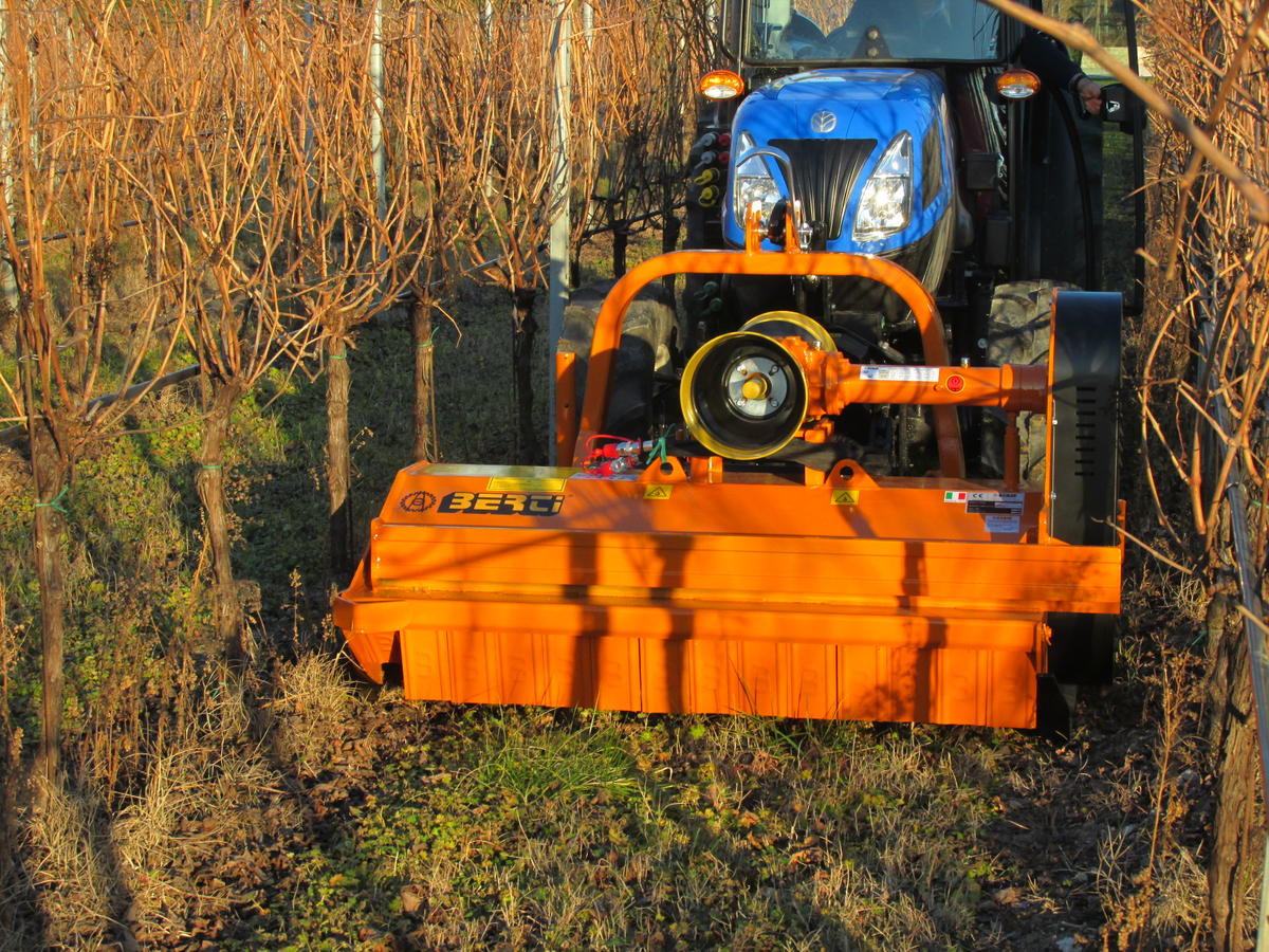 Traktor front hidraulikán, illetve megfordítható irányú traktorokon is használható szárzúzó. Szőlő és gyümölcsültetvény karbantartására, max. 8 cm átmérőjű ágak, gallyak, venyigék, fás és lágy szárú növények zúzására alkalmas. 40-110 LE teljesítményű traktorral használható, 140-220 cm munkaszélességben.