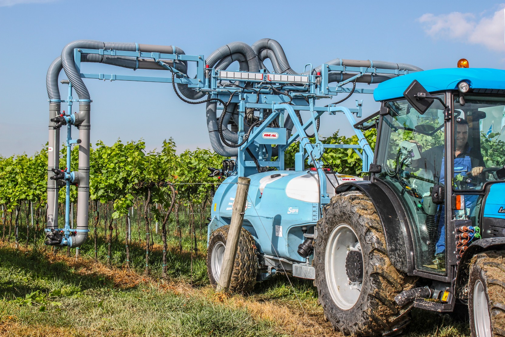Alacsony nyomás, magas teljesítmény! Az IDEAL SUPRA permetezőgép kordonos szőlő ültetvényekben egymenetben 3 sor 2 egész és 2 fél sor kezelésére alkalmas. Mechanikus porlasztással, alacsony léfelhasználással dolgozik, (150-250 liter/ha).
