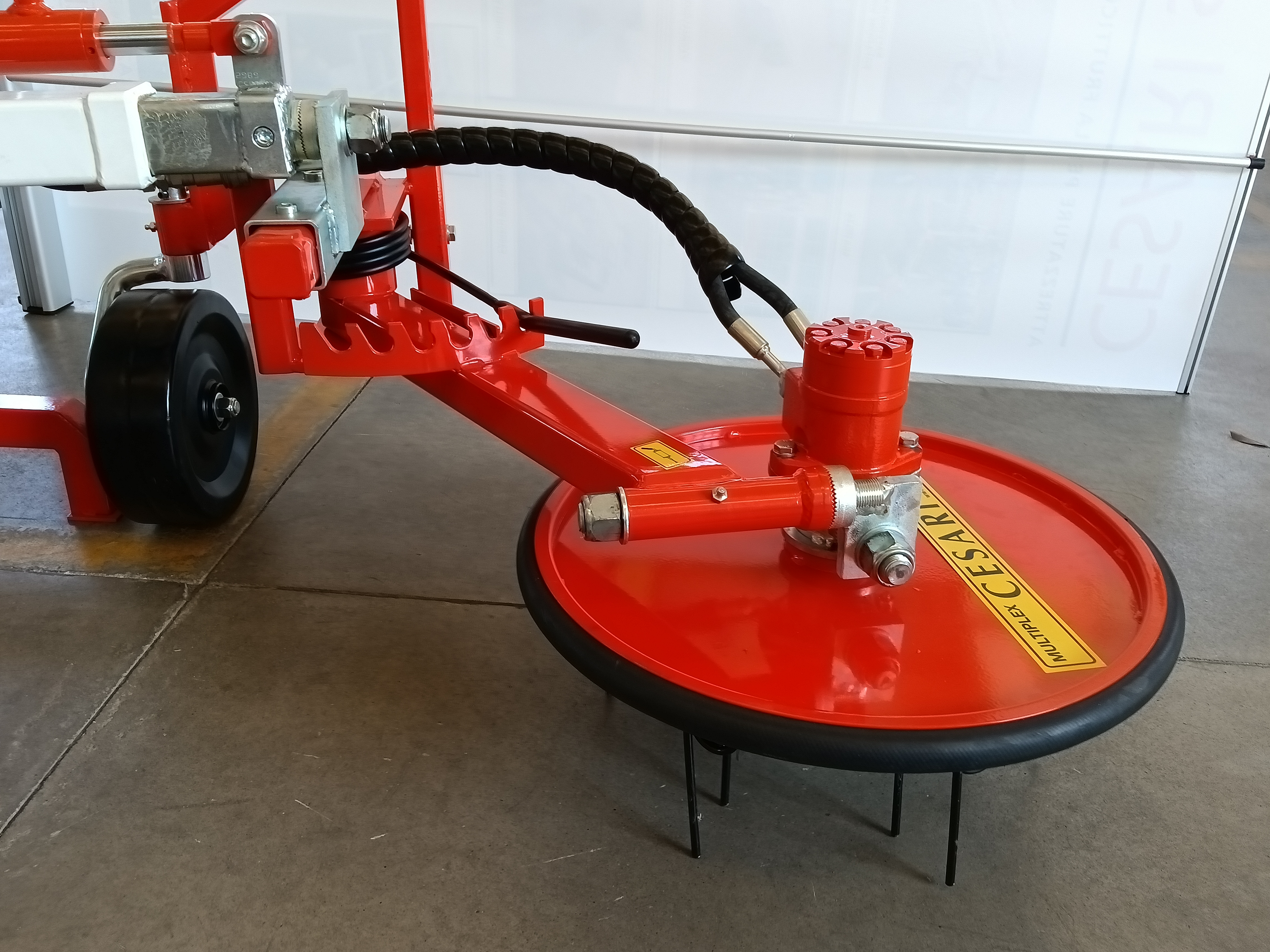 Egyoldalas hidraulikus sorápoló gép. Elérhető gallyseprő, pengés kasza és küllő kapás gyomirtó fejjel.