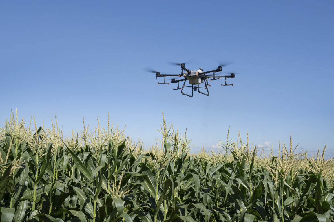 A DJI T30 drón, 30 literes permetezőszer tartálya, 9 méteres munkaszélessége és 16 hektár/órás teljesítménye ideális választássá teszik a legnagyobb kiterjedésű gazdaságok számára is.