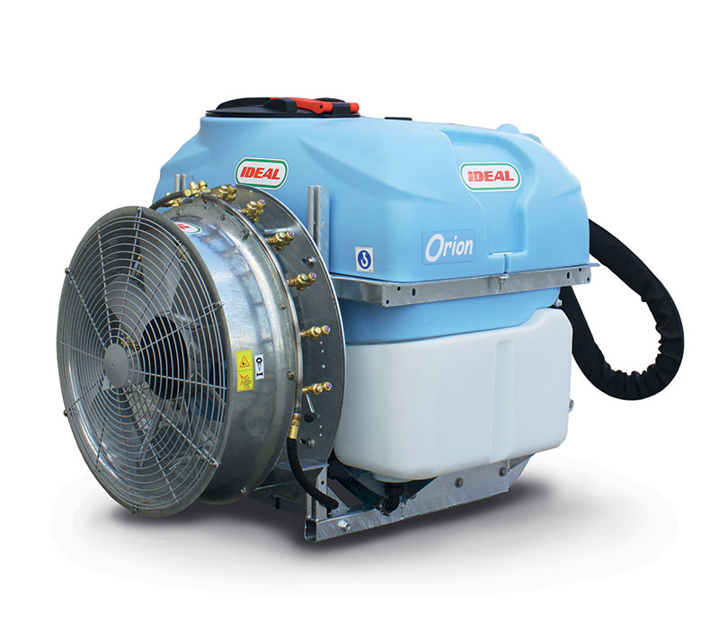 Ideal Orion 400 PB, 500 P, 600 P axiálventilátoros permetezőgép. Különböző átmérőjű axiális ventilátorokkal szerelt permetező, amely sokoldalúságával és minőségi alkatrészeivel tűnik ki. Közepes és nagy mennyiségű vegyszer kijuttatására is alkalmas.