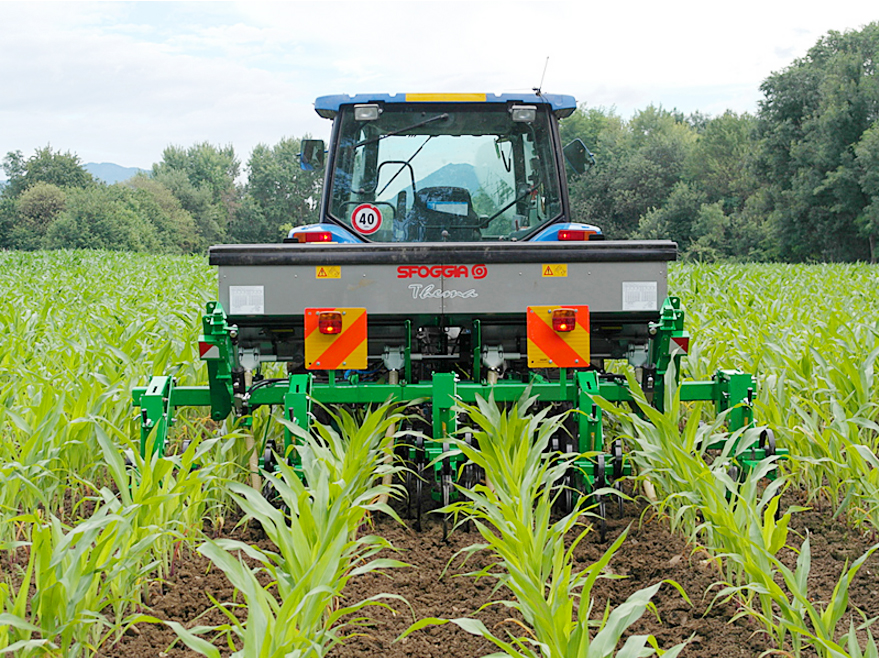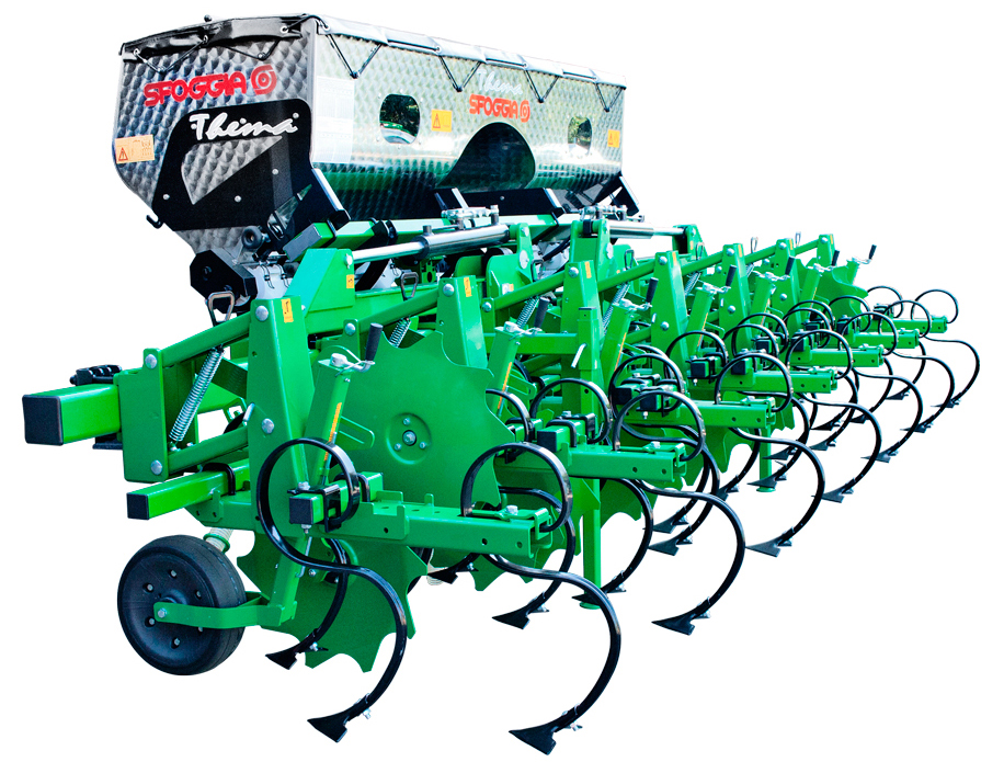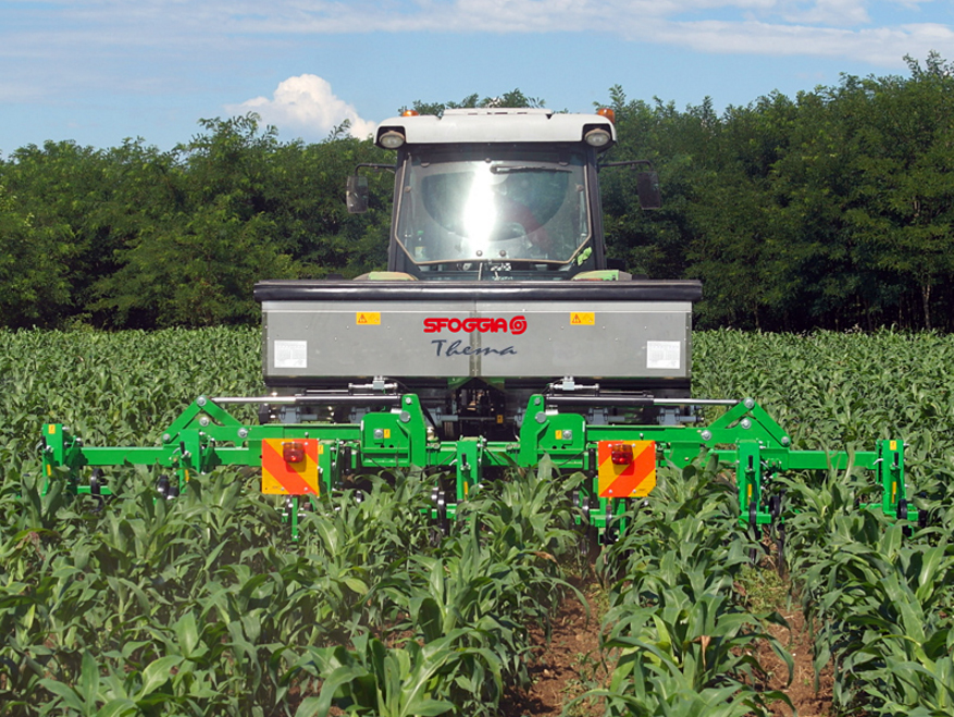Az új Sfoggia Thema sorközművelő kultivátor megfelelő "munkatársnak bizonyul" különböző növényi kultúrákban és eltérő talajkörülmények között, – például homokos, közép-kötött és kötött talajokon – egyaránt megállja a helyét. Minden mozgást végző részegység golyós csapágyakkal van ellátva, a paralelogramma rugóstag pedig önkenős, műanyag perselyekkel van szerelve. A gerendely 100x100 mm keresztmetszetű, 8 mm falvastagságú, kialakítása pedig fix és összecsukható is lehet (kézi, vagy hidraulikus). A műtrágyaszóró adapter 440L műanyag tartállyal szerelhető, illetve 800 vagy 1000L INOX tartállyal választható. Mindkét esetben a szabadalmaztatott mennyiségarányos, soronkénti adagolókat és talajkerék meghajtást szerelnek a gépekre.