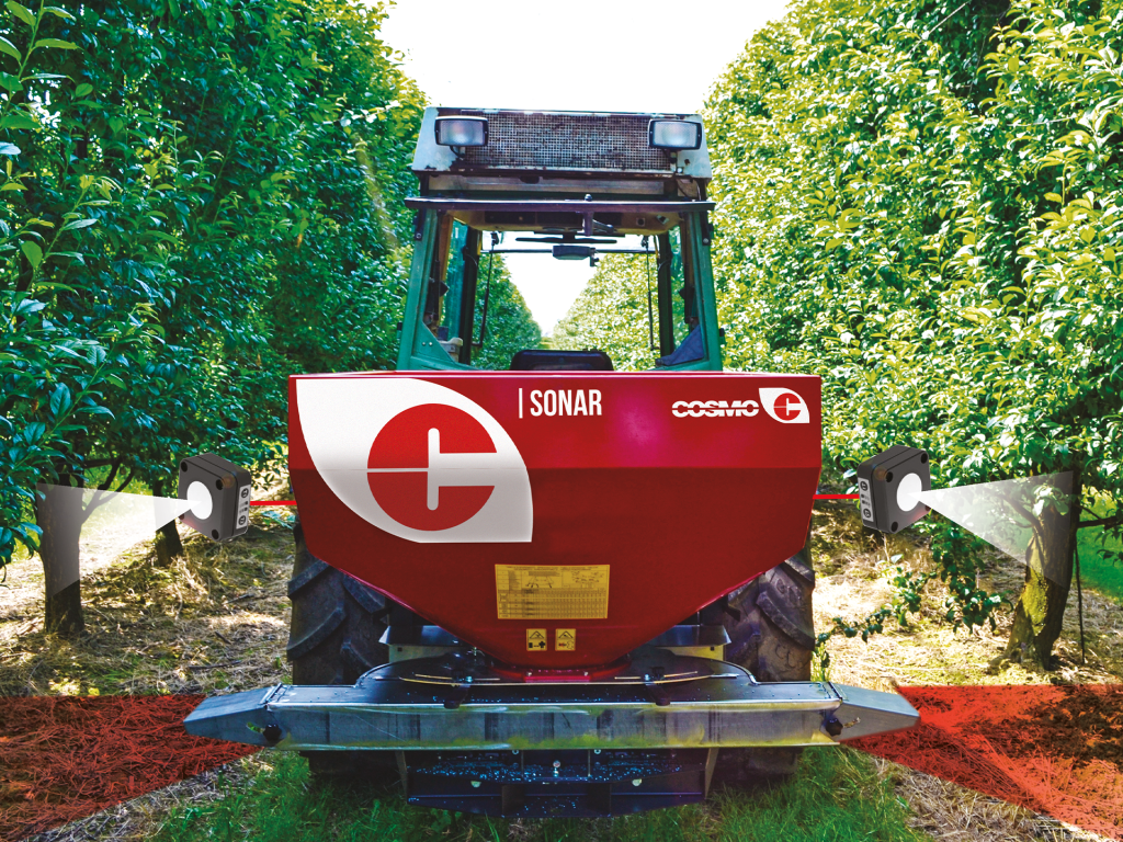 A Sonar rendszer ultrahangos érzékelővel észleli a növények közötti tereket, és egy elektrohidraulikus rendszer segítségével ideiglenesen megszakítja a szórást. Ily módon csökkennek a költségek és optimalizálják az időt, így kevésbé szükséges a garat gyakori feltöltése. Az ultrahangos érzékelők robusztusak és magas IP-védelemmel vannak ellátva.